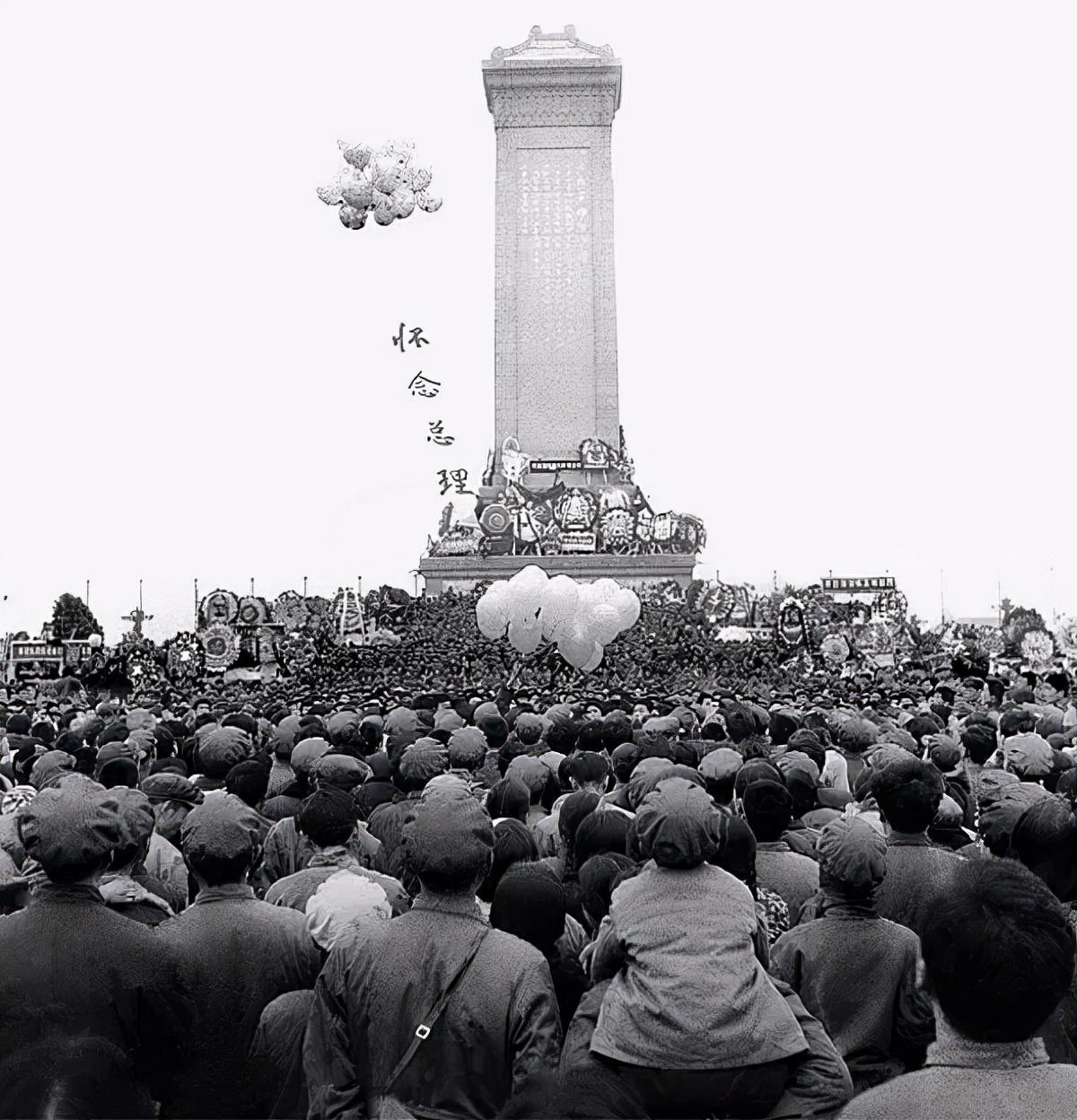 1976年清明节,天安门广场,怀念周总理。王文澜/摄。