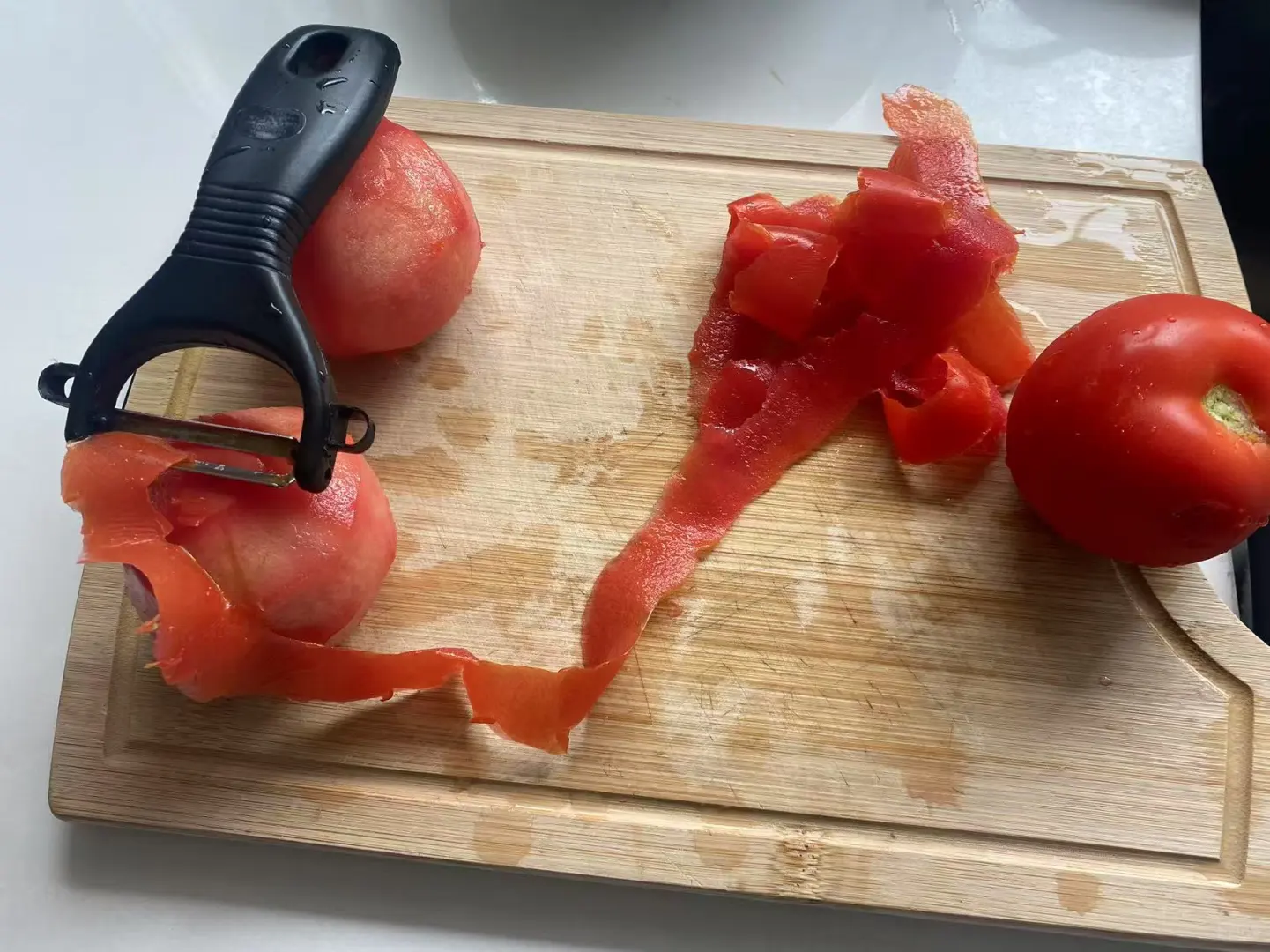 一两分钟就能将皮都削下来。学会这个方法真的比开水烫方便太多了,又得烧水,还得等西红柿晾凉才能剥皮,实在太麻烦了。