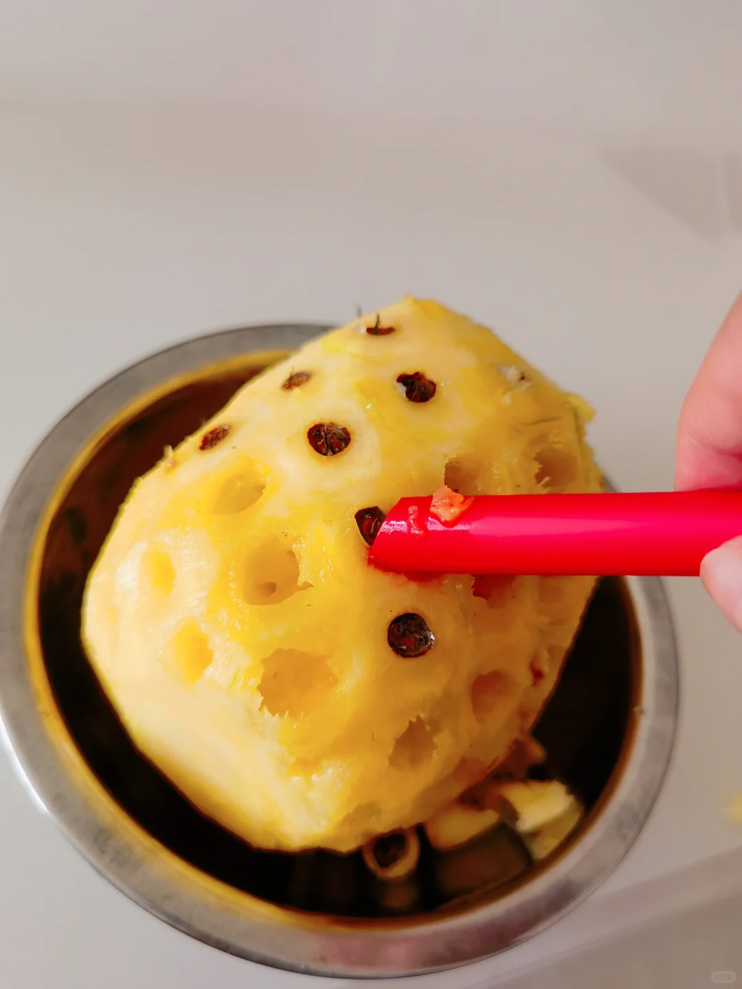 之前还一直苦恼自己没有一个得力去除果眼的好助手,直到看见人家用一根比较粗的吸管就搞定了。