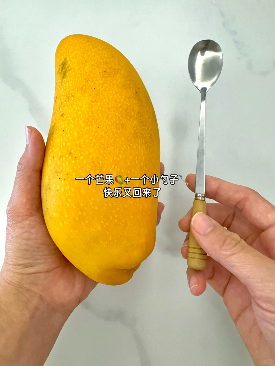 用力过猛还弄的黏糊糊的,还弄的砧板和刀具到处都是,脏了吧唧不好清理。吃了这么多年芒果,居然才知道一个吃芒果的好办法,那就是用勺子。
