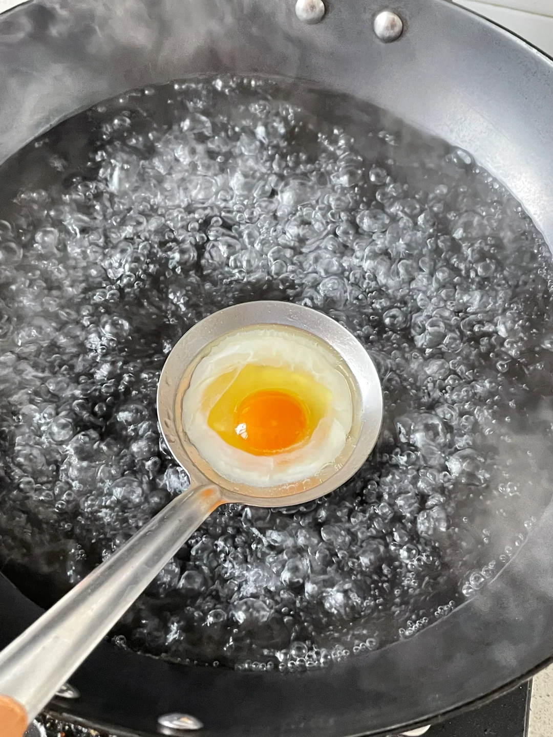 直接把鸡蛋打在勺子上,然后把勺子放在锅里的沸水之上,等到鸡蛋定型之后再滑倒锅里,这样就能得到一个完整的荷包蛋了。