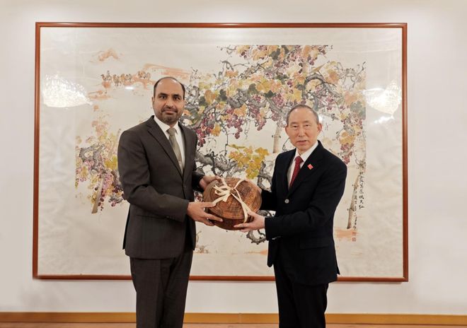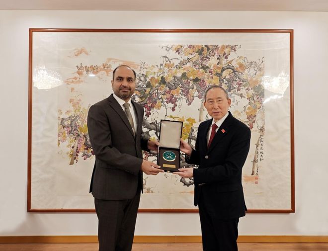 11 月 21 日,中国国际文化传播中心执行主席龙宇翔与巴基斯坦驻华使馆国防武官兼陆军武官古拉姆・穆斯塔法准将和新任国防武官兼陆军武官阿里·阿斯加尔·汗准将在北京亲切会见,双方围绕传承中巴传统友谊、深化多领域务实合作等方面展开深入交流。