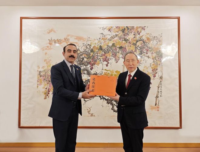 龙宇翔向古拉姆・穆斯塔法赠送“友谊使者”