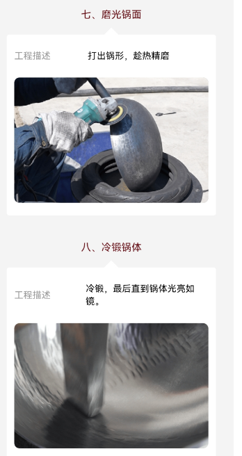 三、冷锻:精雕细琢的打磨如果说热锻是 “大刀阔斧”,冷锻则是 “精雕细琢”。经过热锻的锅体冷却后,进入五道冷锻工序,这是决定锅面质感与性能的核心: