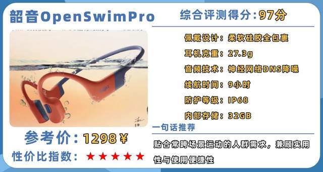 韶音OpenSwimPro精准贴合常跨场景运动的人群需求,兼顾实用性与使用便捷性,综合表现全面无明显短板,是跨场景运动用户的优选装备。