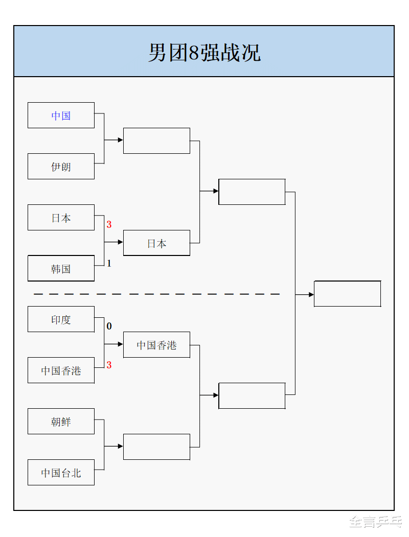 如前所说,男团8强此前空缺了2个席位,所以朝鲜、伊朗都可以获得晋级,而经过抽签后,两队将分别迎战中国台北队和中国队。