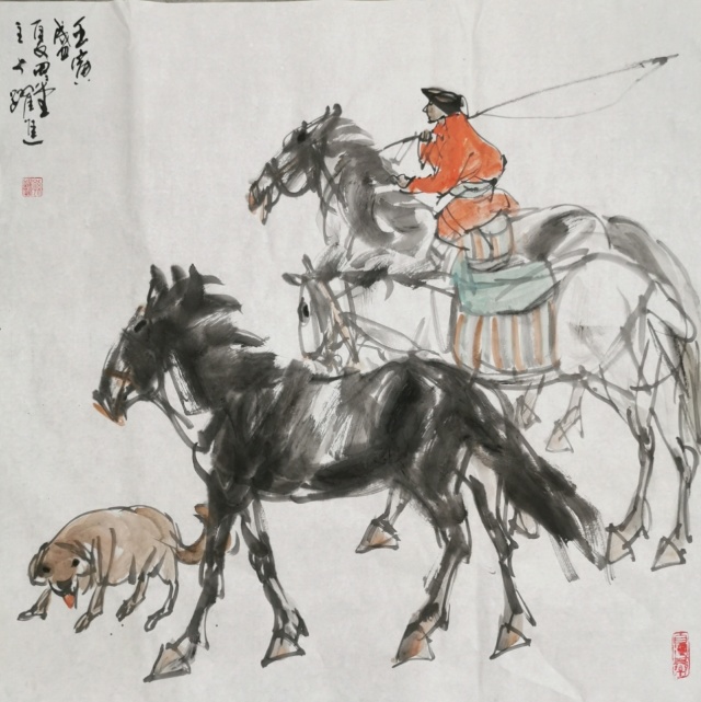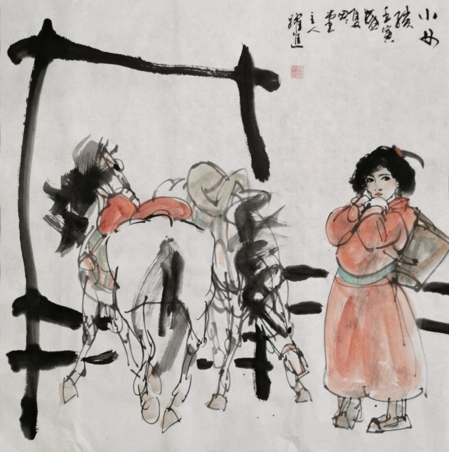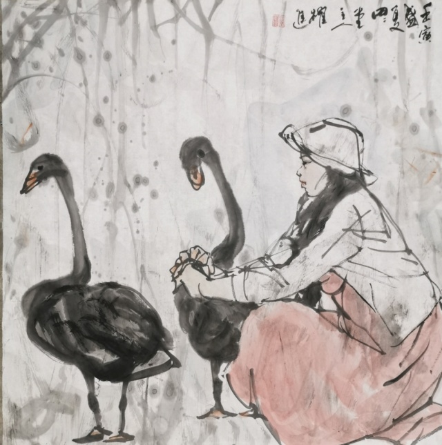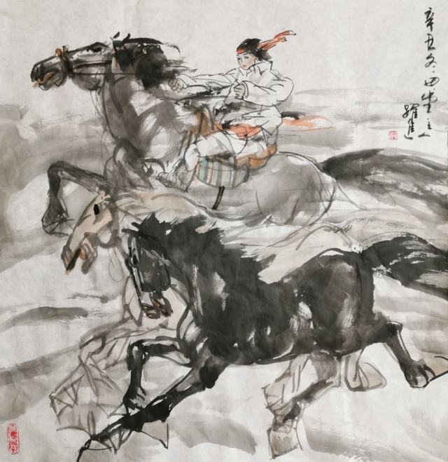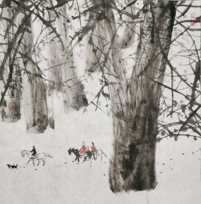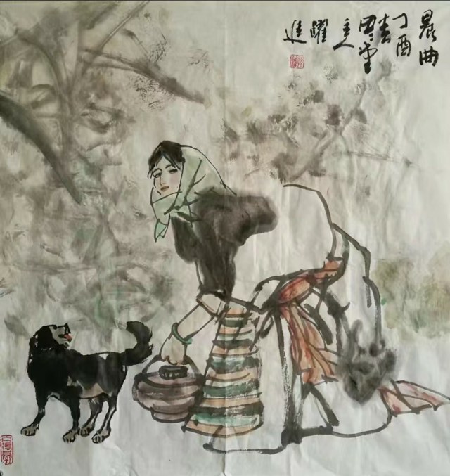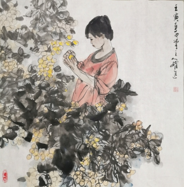 孙跃进先生精心研习书画艺术,无俗利之逐取,无虛名之追求,亦不以绘画而谋生活,所以他的丹青修炼,完全是出于修身养性,陶冶情操的目的。目的纯粹,画风超脱。纵观他的绘画作品,无一例外,都显发着丹青无挂碍,清许质如泉的透彻与明净。他毕业于中央美术学院徐悲鸿画院研修班,有着深厚的笔墨理论涵养,所以对外师造化中得心源法则理解特别深刻,实践特别执着。观人物姿态,心穷万物之源,不但是他的艺术目标,也是一-场永无止境的丹青修行。他能沟通心源与造化的双向对流,别人熟视无睹的人物景象,可以成为他描述人物造意的心灵感触。
