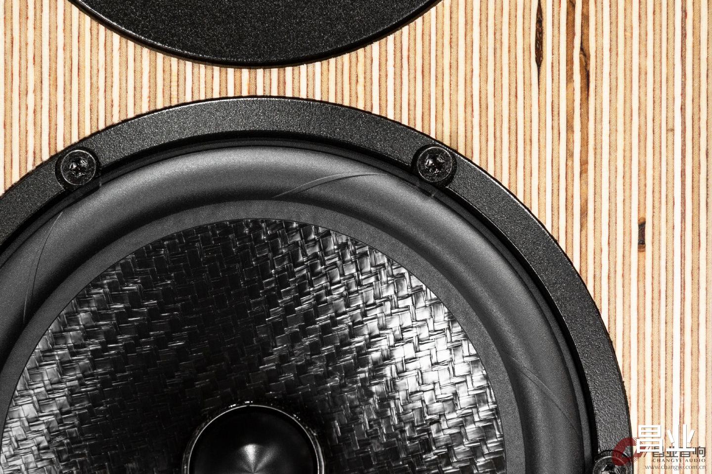 至于系统的喉舌Talvi音箱虽然不是PENAUDIO的顶级系列,但仍采用了该品牌标志性箱体结构。在Talvi身上您可以看到PENAUDIO赖以成名的“多层结构板”条纹。这种纹路可以说“只此一家,别无分店”,具有很高的辨识度。近看这些条纹其实是由两种不同的薄木片交错堆叠层压而成。PENAUDIO这样做绝对不是为了好看,而是完全是从音质的角度考虑。单一的箱体材料处理谐振通常不太理想,因为每种材料都有固定的谐振频率。