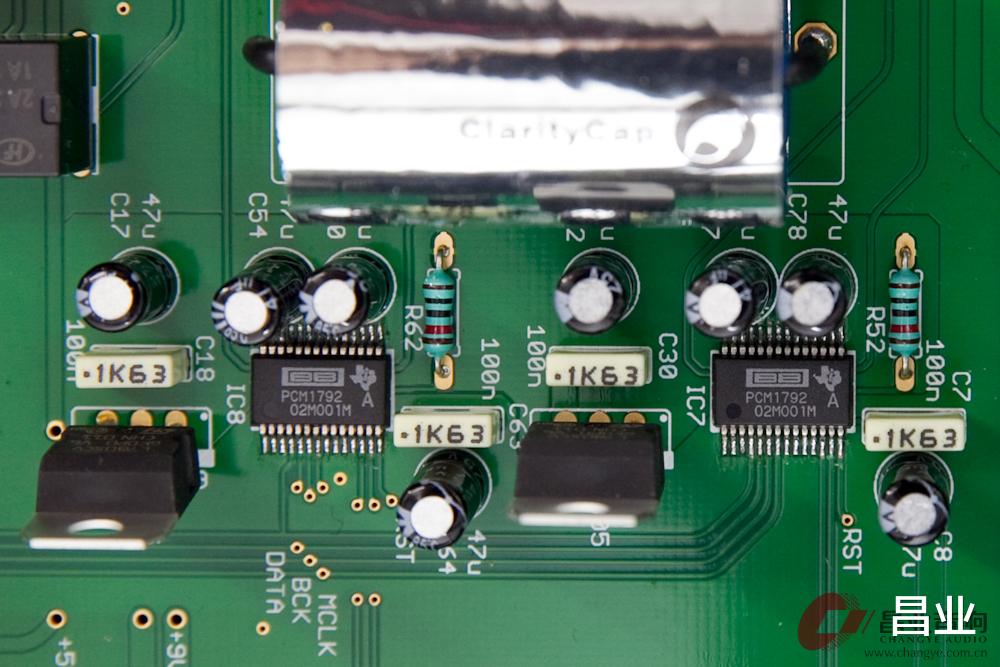 四份相同的模拟放大线路表明它是真平衡设计,采用无负反馈A类放大方式,每份模拟放大电路还分别对应着一只补品级的ClarityCap耦合电容,着实令人眼馋。