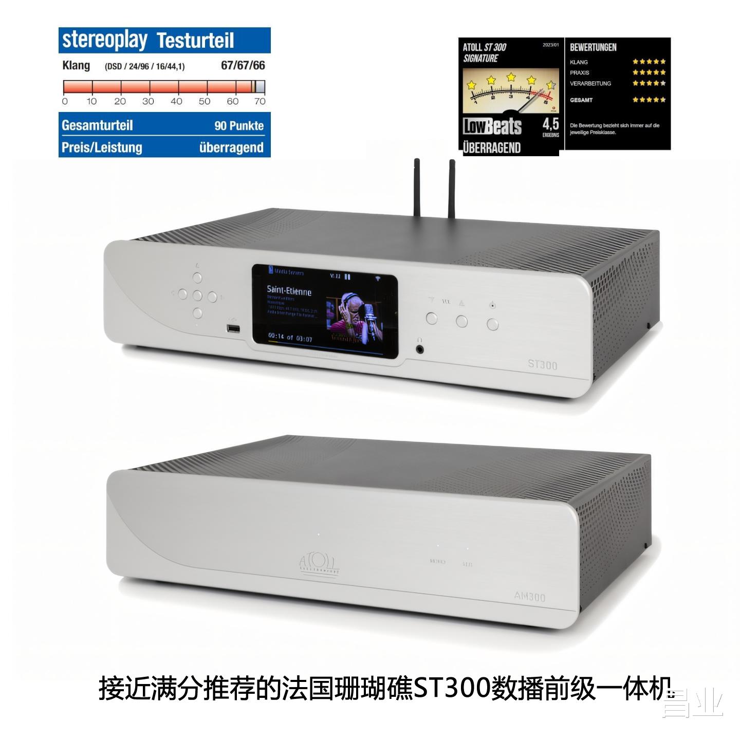 ATOLL原厂非常推荐“ST300 Signature+AM300”这种玩法,认为它中间环节少、投资少而又效果好,性价比很高。用户可通过遥控器或在前面板操作将ST300 Signature设置为所需要的模式。直通时ST300 Signature上的音量控制不起作用,即为“纯数播”;非直通时ST300 Signature可调节音量,而且还有两组输入,可接唱放、卡座、调谐器等,此时为“前级+数播”模式,再接一台功率放大器和一对音箱即可组成一套完整的系统。
