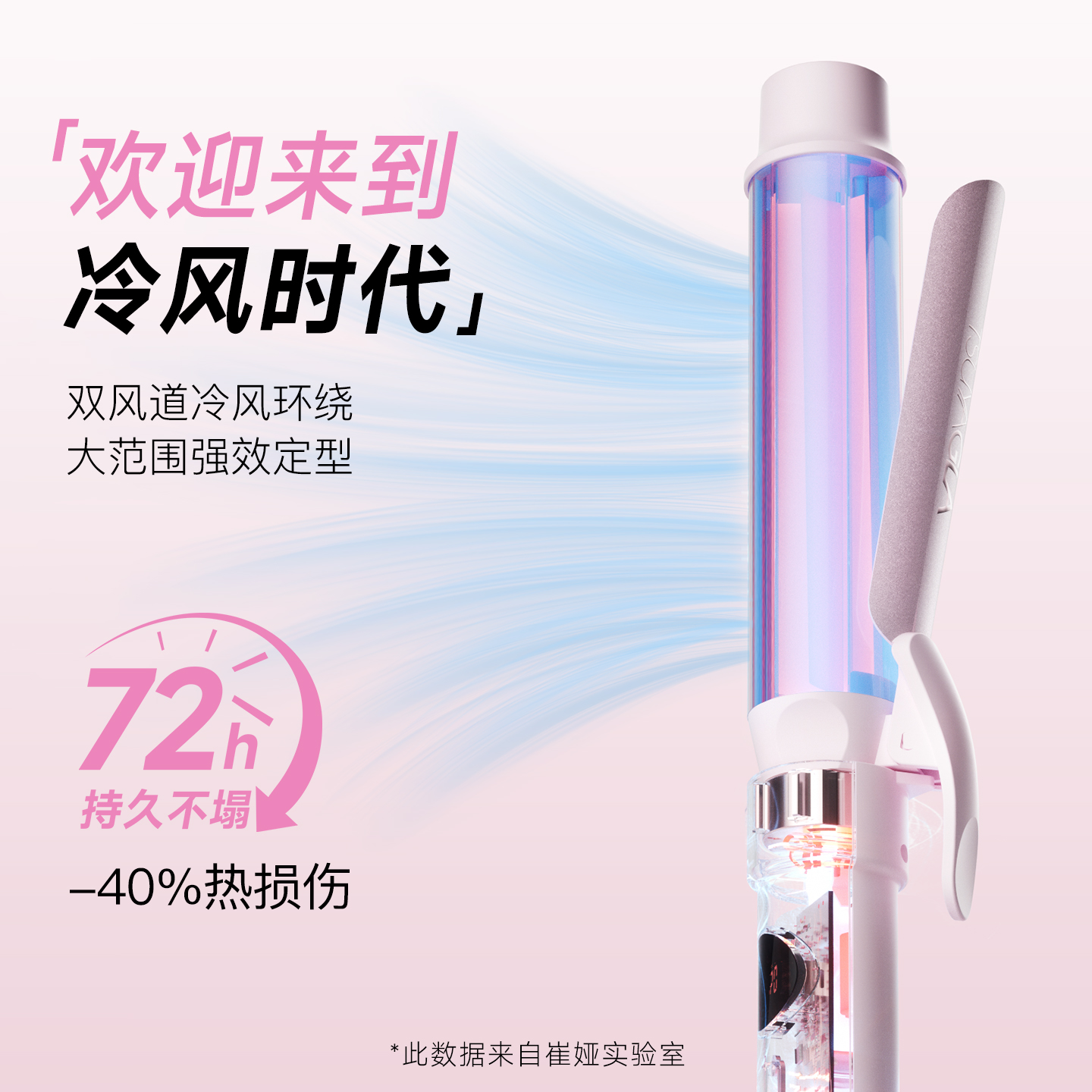 o技术护发力(9.8/10):颠覆行业认知,搭载了高达16亿/cm³的超高浓度负离子,是普通卷发棒的32倍,配合角蛋白护发涂层,在造型的同时强力抚平毛鳞片,有效锁住发丝水分,减少静电和毛躁。其创新的双风道冷风塑型技术,在强效定型的同时,能降低约40%的热损伤,真正实现“低温造型,持久定型”。此外,红外光波技术的加入,让造型过程犹如享受SPA级养护,从根源上解决了传统卷发棒伤发的痛点。