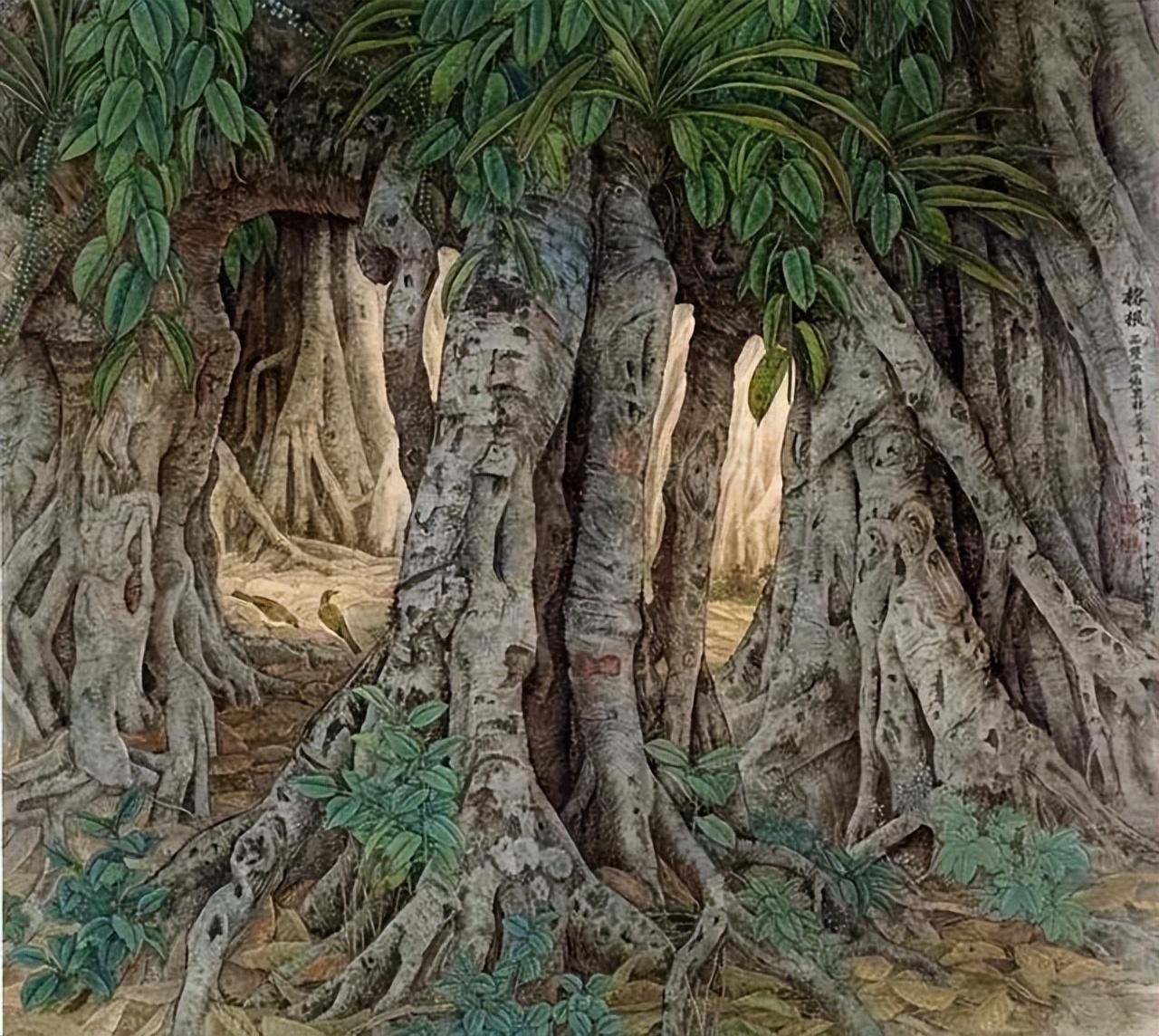 在艺术创作上,金鸿钧的核心突破在于“以传统为基,以创新为魂”,实现了工笔重彩花鸟画在表现形式与思想内涵上的双重革新。他的创新并非脱离传统的凭空创造,而是在对传统技法深度挖掘的基础上,广泛吸收东西洋绘画的优点,更重要的是将“以造化为师”作为创作的核心准则。他坚信,艺术的生命力源于生活,每一幅作品都应有坚实的生活依据。