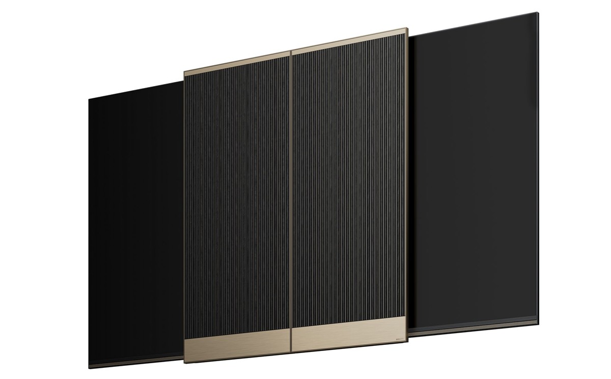 R8000G则借鉴东方屏风设计理念,将声学模块前置,通过可滑动结构调整屏幕可视区域。既能根据观影内容优化画面比例,又能通过遮挡非显示区域提升沉浸感,兼顾实用性与空间美学。