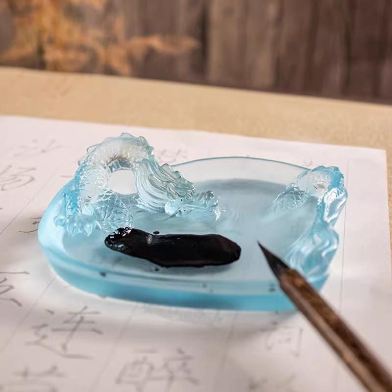 每一道工序都凝聚着工匠们的精湛技艺和对传统工艺的敬畏之心,让这方古法琉璃潜龙砚成为独一无二的艺术珍品,承载着千年的文化传承与匠心精神。