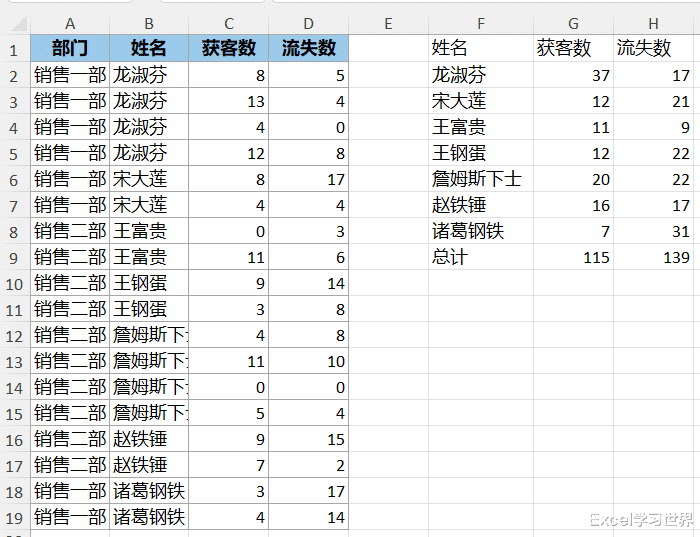 3. 下面的公式,则是将“部门”和“姓名”都设置为行区域:
