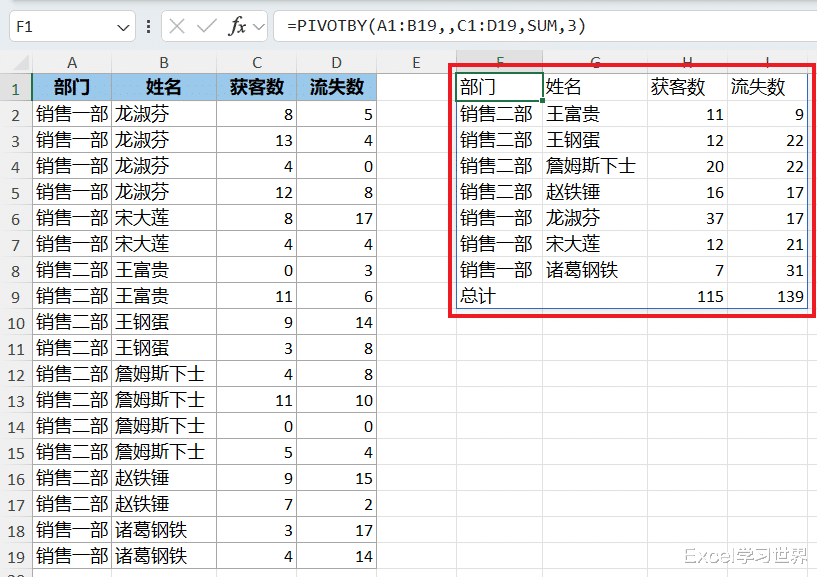 PIVOTBY 函数相当于数据透视表功能的函数版本, 它支持沿两个轴分组并聚合关联的值;