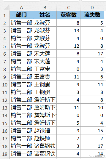2. 如果改成下面的公式,就可以将部门设置为列区域: