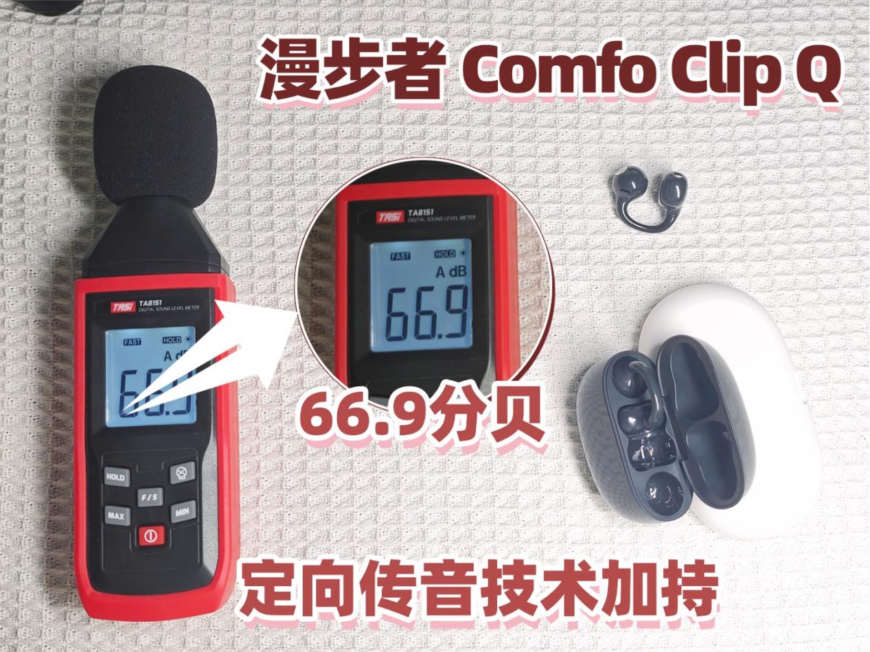 漫步者 Comfo Clip Q:讲真,这款耳机漏音是真挺一般的,我实测下来最大漏音能到 73.2 分贝,平时用着声音特容易飘出去,特影响身边人。就说在地铁上或者办公室这种场景,我都不敢把音量开太大,生怕吵到别人。