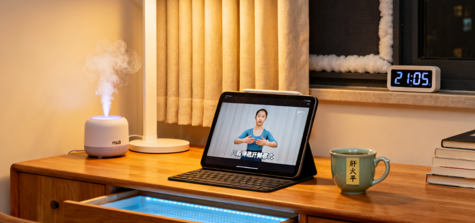 • 睡前放松:睡前一小时,进入“关机模式”。可以泡个热水脚(引火归元,促进循环)、听舒缓的音乐、进行正念冥想或深呼吸练习、阅读纸质书(非刺激类)。