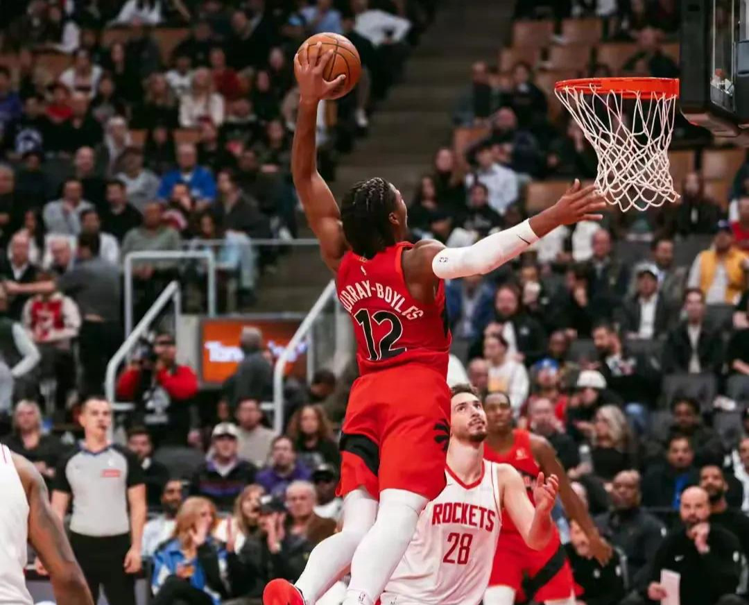客场作战的休斯敦火箭杜兰特,史密斯,申京,阿门,奥科吉搭档先发,猛龙队巴恩斯,英格拉姆,奎克利,莫里.博伊尔斯,巴特勒率先登场。