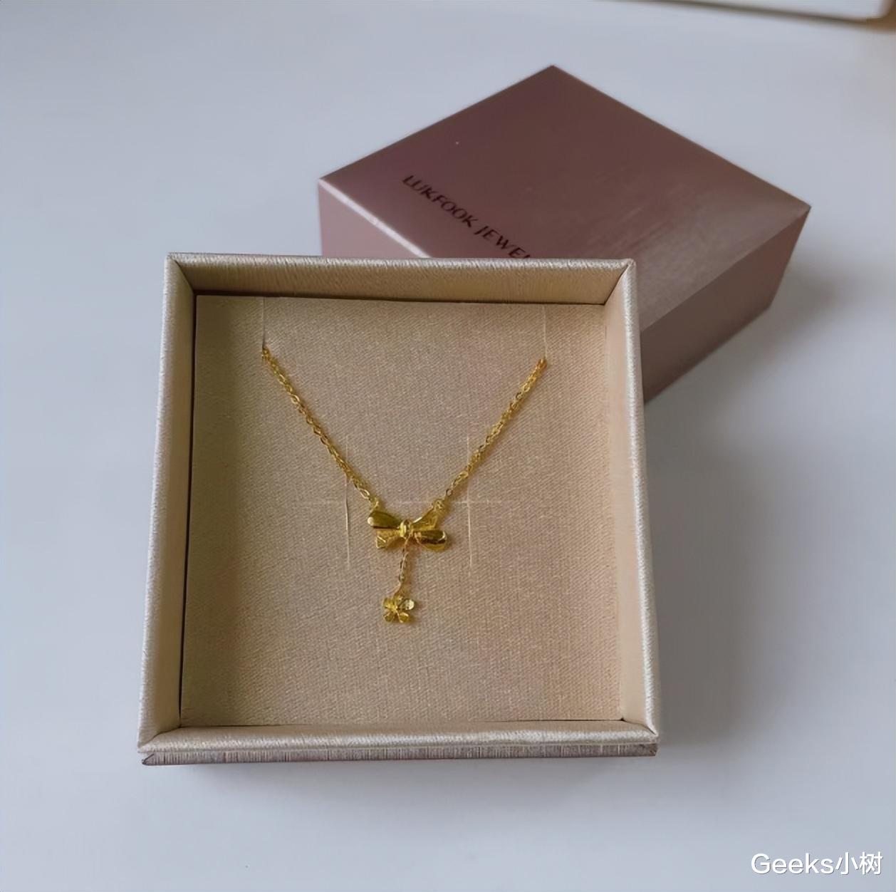现在东西已经到手,是六福珠宝的一款套链,名字挺诗意的,叫蝶恋兰姿。这款是热门款,在小红书上早就被种草了,一直没下手的原因就是因为价格。结果这次原价将近5000的链子,唯品会直接干到了不到四千,相当于打了8折多。