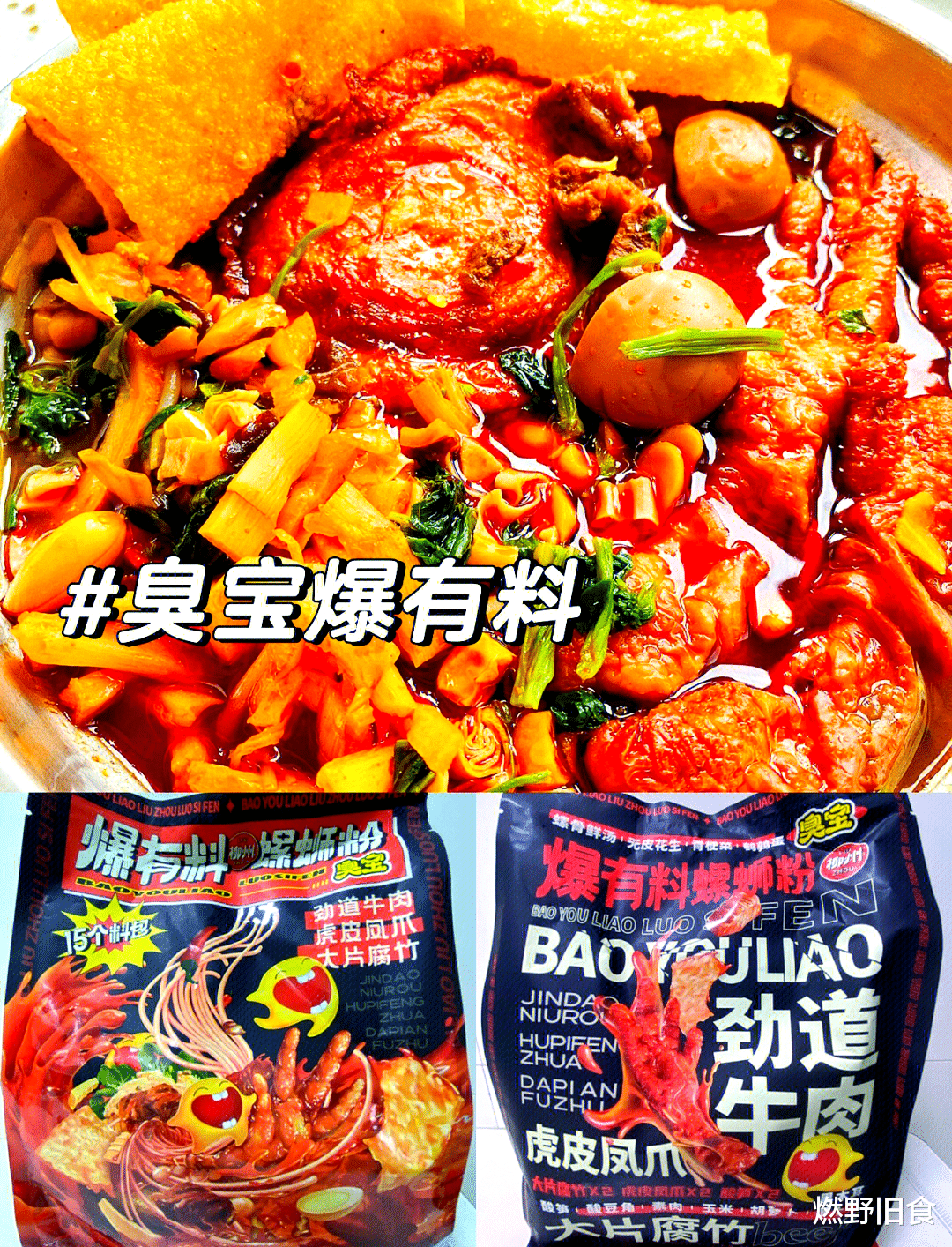 配料表亮点:螺肉、大片腐竹、酸笋、牛腩块(番茄款)、特制辣油。