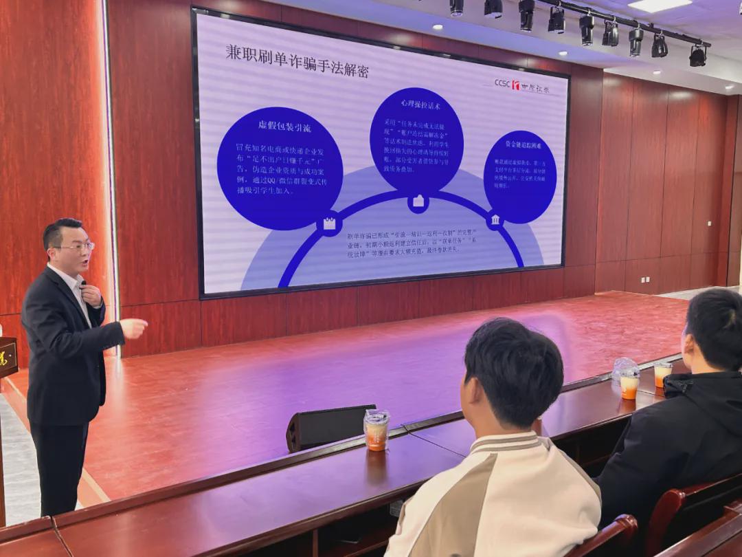 现场气氛热烈,互动积极,同学们纷纷表示通过此次讲座,对常见的电信网络诈骗有了更为深入的认识,今后将更加警惕,主动防范。此次专题讲座的成功举办,不仅增强了信阳工程职业学院师生对电信网络诈骗的识别与防范能力,也为学校后续系统化、常态化开展安全教育工作奠定了良好基础。学校将持续深化反诈宣传工作,通过多种渠道与形式常态化开展安全教育活动,不断提升学生识诈、反诈的综合能力,共同筑牢校园安全防线,为学生的健康成长与校园的和谐稳定保驾护航。(贾海燕 姚广义 孟凡俊)
