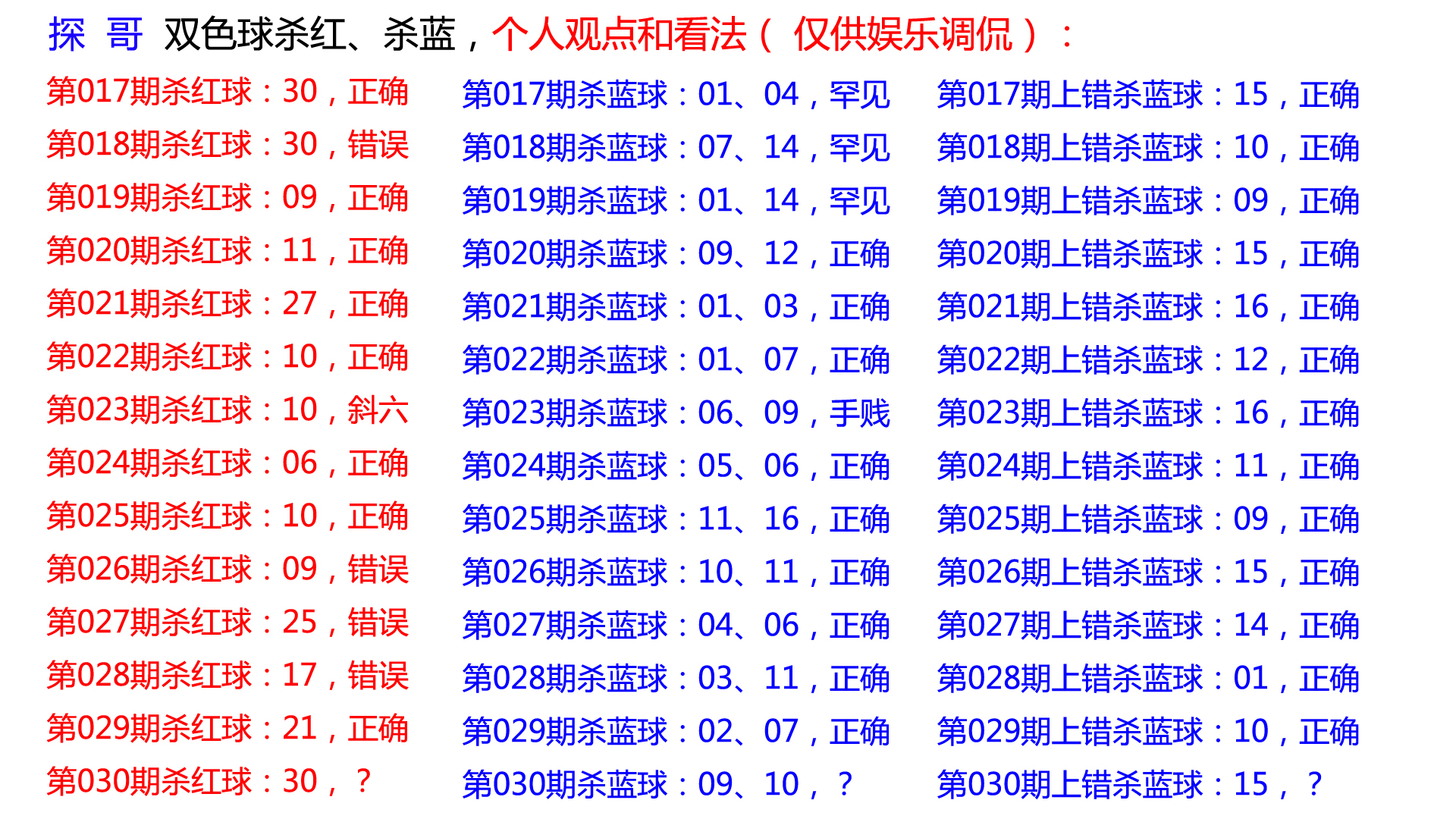 四、本期红球、蓝球杀号(个人观点看法,仅供娱乐调侃):
