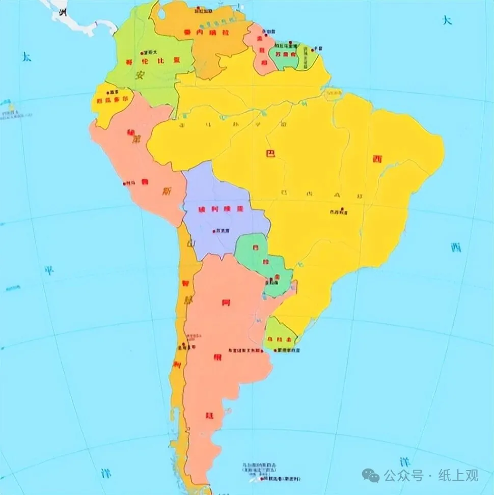 整个拉丁美洲大部分地区是西班牙的殖民地,葡萄牙则占了巴西这一大块地,巴西没有因为总督区划而分裂,但殖民时期的边界问题倒是遗留了下来。葡萄牙与西班牙文化相似,巴西与拉美西语国家的差异倒也不算太大。