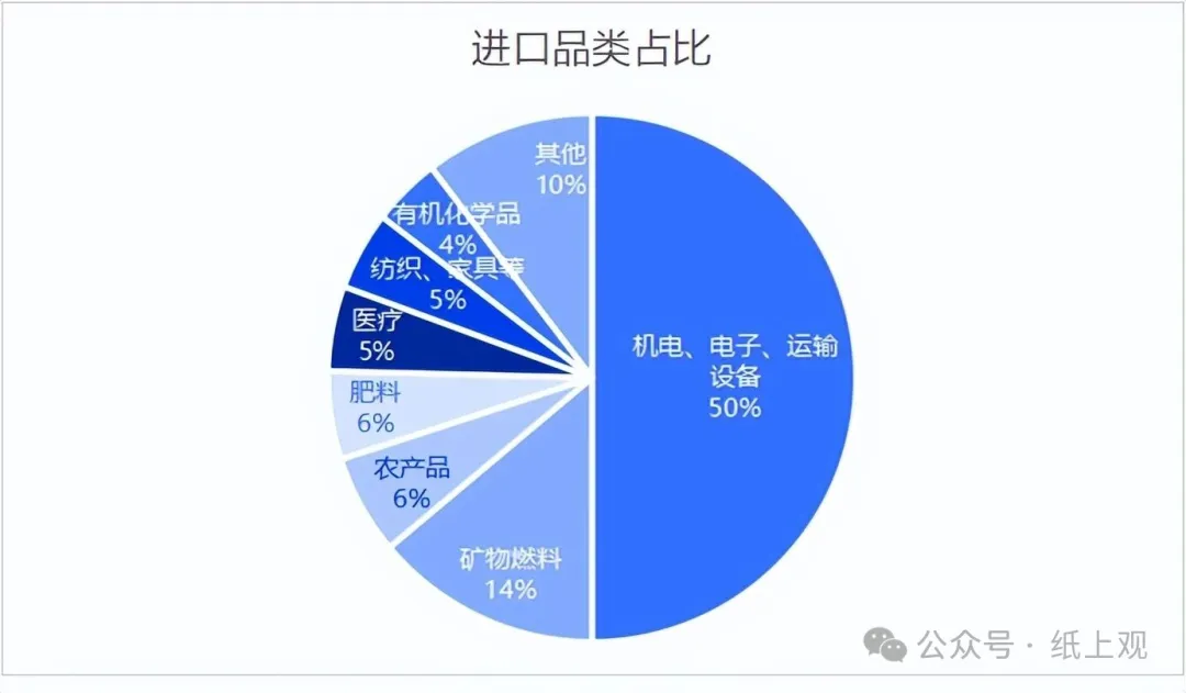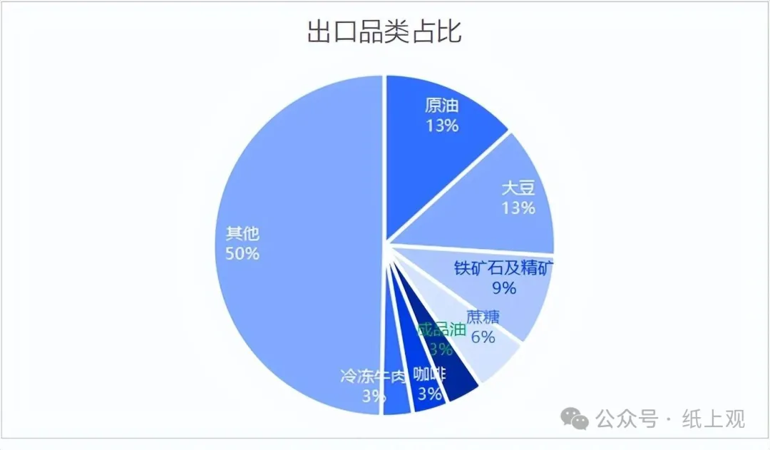 出口品类中,农产品及其加工品、矿产能源类商品合计贡献超过70%。