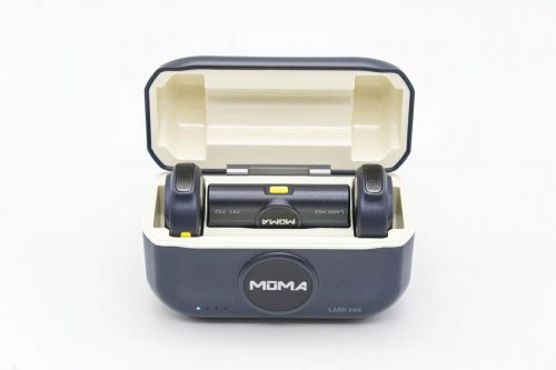 猛玛麦克风采用纽扣式设计,外观圆润扁平,单只重量约9.4克,佩戴于衣领或帽檐上比较轻便,但设计上没有特别亮眼之处。充电盒背部带银色金属转轴,与黑色机身形成轻微对比,增加了一点质感,但整体依旧低调。性能方面,内置降噪系统可以在一定程度上抑制环境噪音,支持48kHz/24Bit采样率,在1–2米范围内拾音清晰,人声还原度尚可,适合日常拍摄或一般内容创作使用,总体表现平平,无明显特色。