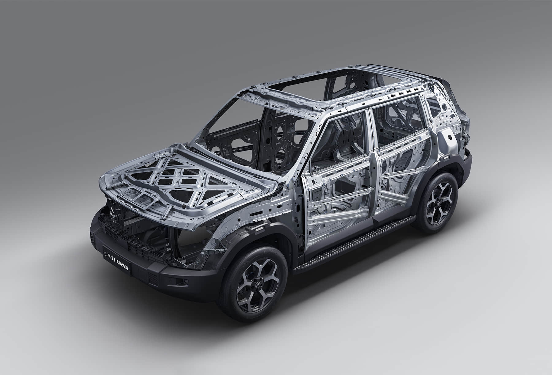 安全方面,2025款山海T1采用笼式车身结构设计,全车高强度钢占比超过80%,其中潜艇级22MnB5钢抗拉强度达1500兆帕。车顶静态承重高达300kg,承重水平是同级车型的三倍,可平替专业防滚架。