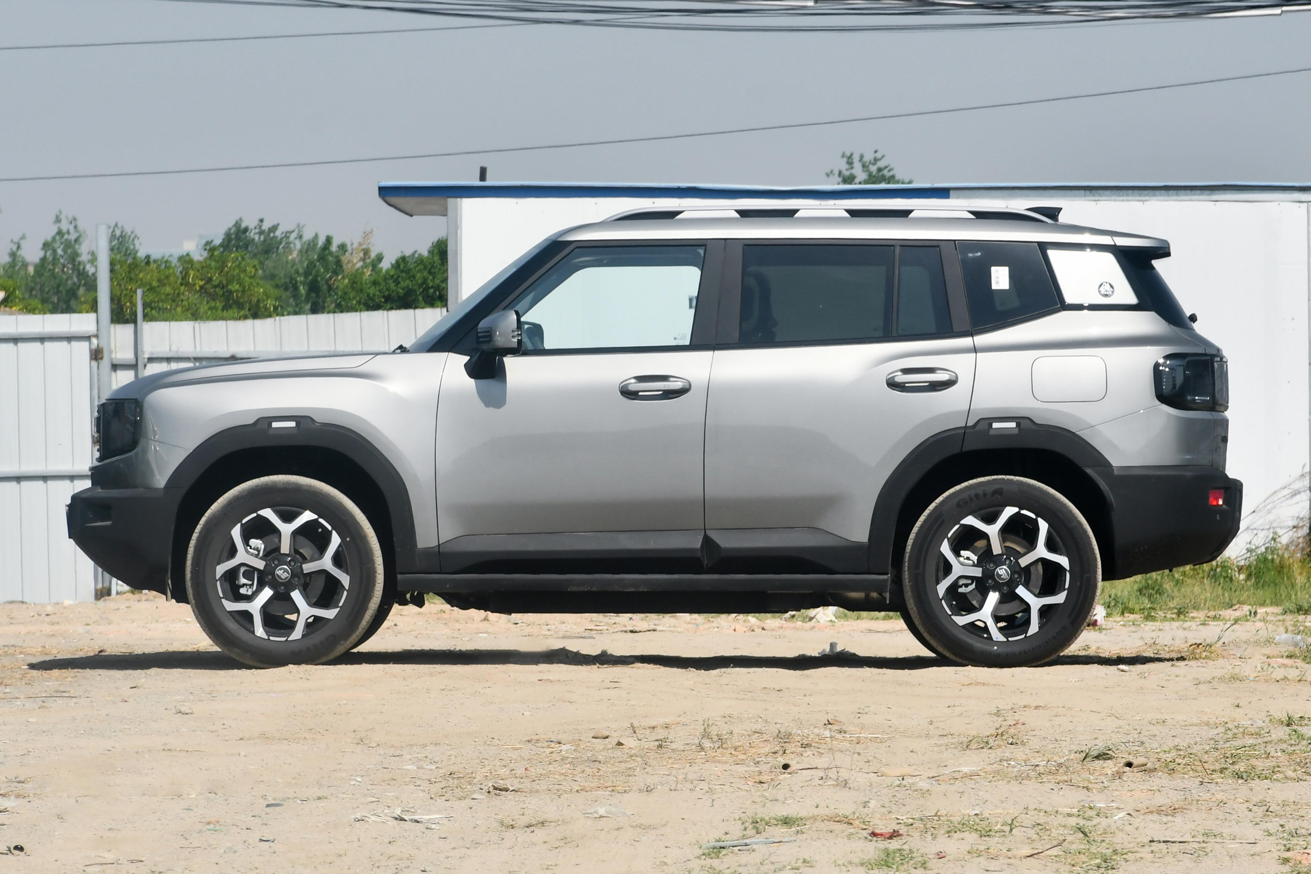 侧面采用悬浮式车顶设计,车身离地间隙高,车顶平直,前后轮拱多边形设计,既保留了方盒子的经典造型,又注入了一丝时尚气息,车身四周配备黑色塑料包围,配常规门把手和固定踏板,方便上下车。车顶行李架粗壮,承重能力大,可安装车顶行李箱存放露营装备。