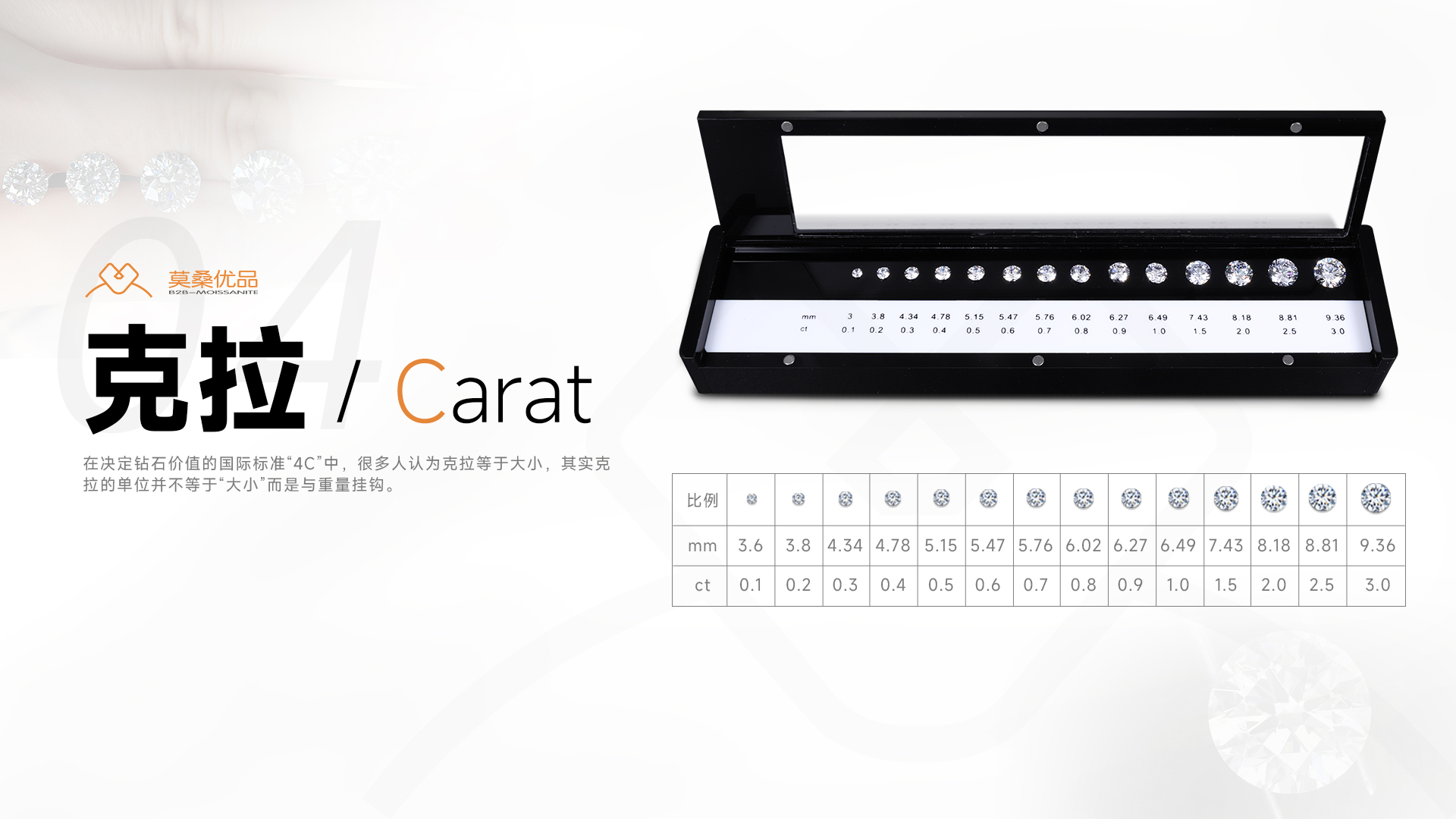 1. 克拉与分:1克拉(ct)=100分(pt),1分=0.01克拉;1克拉=0.2克;