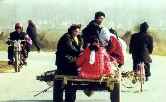 过年走亲访友是那时候的习俗,不过在六七十年代的时候并没有流行坐飞机、火车,离得比较近的也都是乘坐像照片中这样的农用三轮车。