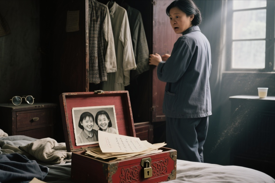 为了弄清真相,我开始偷偷观察我妈。有一次,我看见她从衣柜里翻出一个旧木盒,里面装着一沓泛黄的信件和一张老照片。照片上是两个年轻姑娘,穿着碎花衬衫,笑得一脸灿烂,其中一个很像年轻时的我妈。