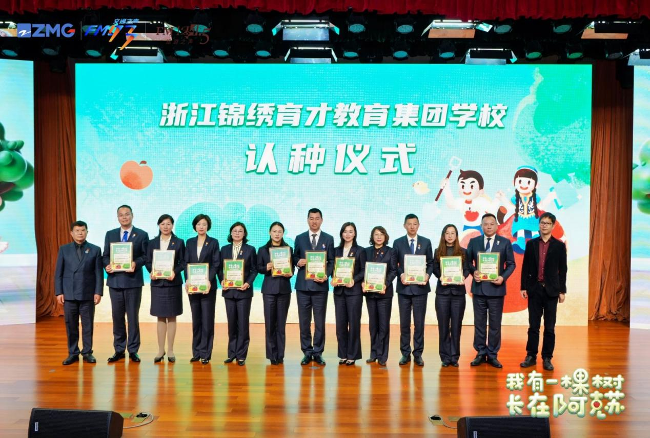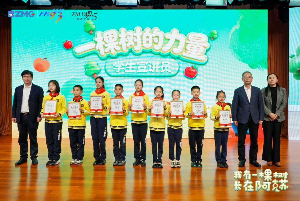 数据见证着这场爱心接力的力量。2024年认种70棵苹果树,2025年认种超百棵,2026年锦绣育才教育集团旗下11所小学全部参与,累计认种近700棵。三年接力,一棵棵幼苗扎根戈壁上的“丝路育才林”,也长在孩子们心里。活动现场发布了“锦绣育才冰糖心计划”,并为首批“一棵树的力量”学生宣讲员颁发证书。