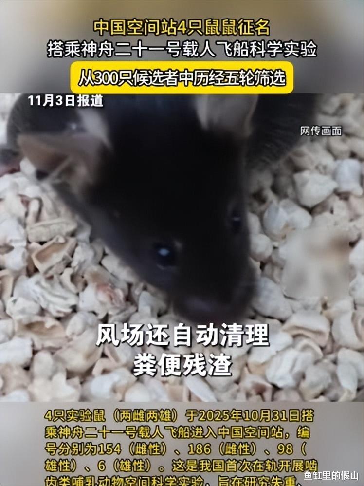 那4只实验鼠呢?神舟21号上天的时候,带上去4只实验小白鼠,它们是空间生命科学实验的重要成员,主要用于研究太空微重力对生物体骨骼与肌肉的影响,本来计划是实验5-7天就回来,没想到也被迫滞留。不过为它们准备的食物、水源,早已单独配给,并有自动循环装置。所以这几只“太空鼠”不仅不会抢资源,反而帮助科学家理解未来人类长期太空驻留的风险。