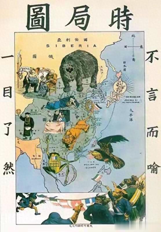 1894年中日甲午战争后,我们中华民族面临巨大的民族危机。名叫谢缵泰的画了一幅晚清时局图。