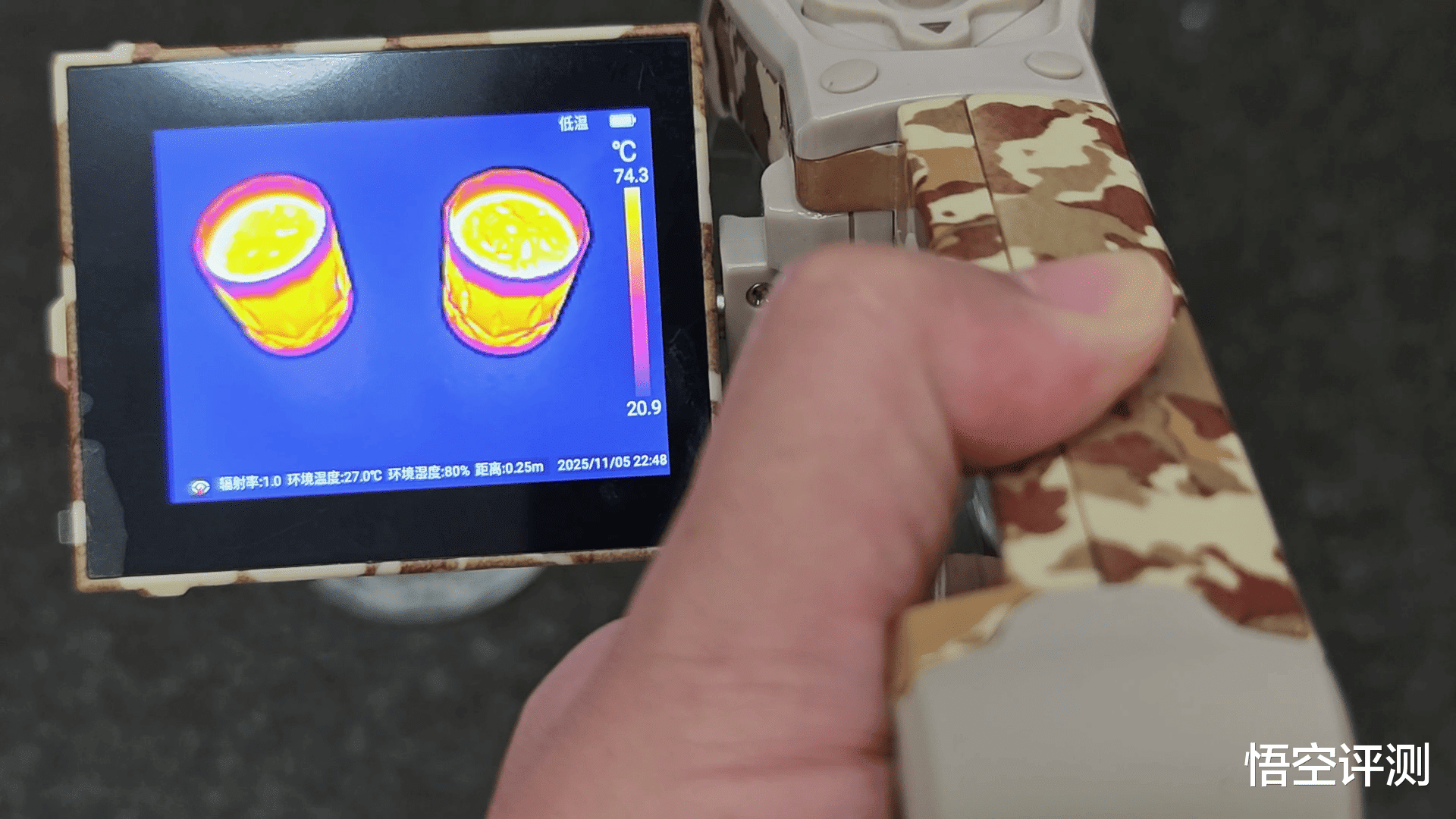 测试方法:准备了两倍热水,温度均为74.3℃。