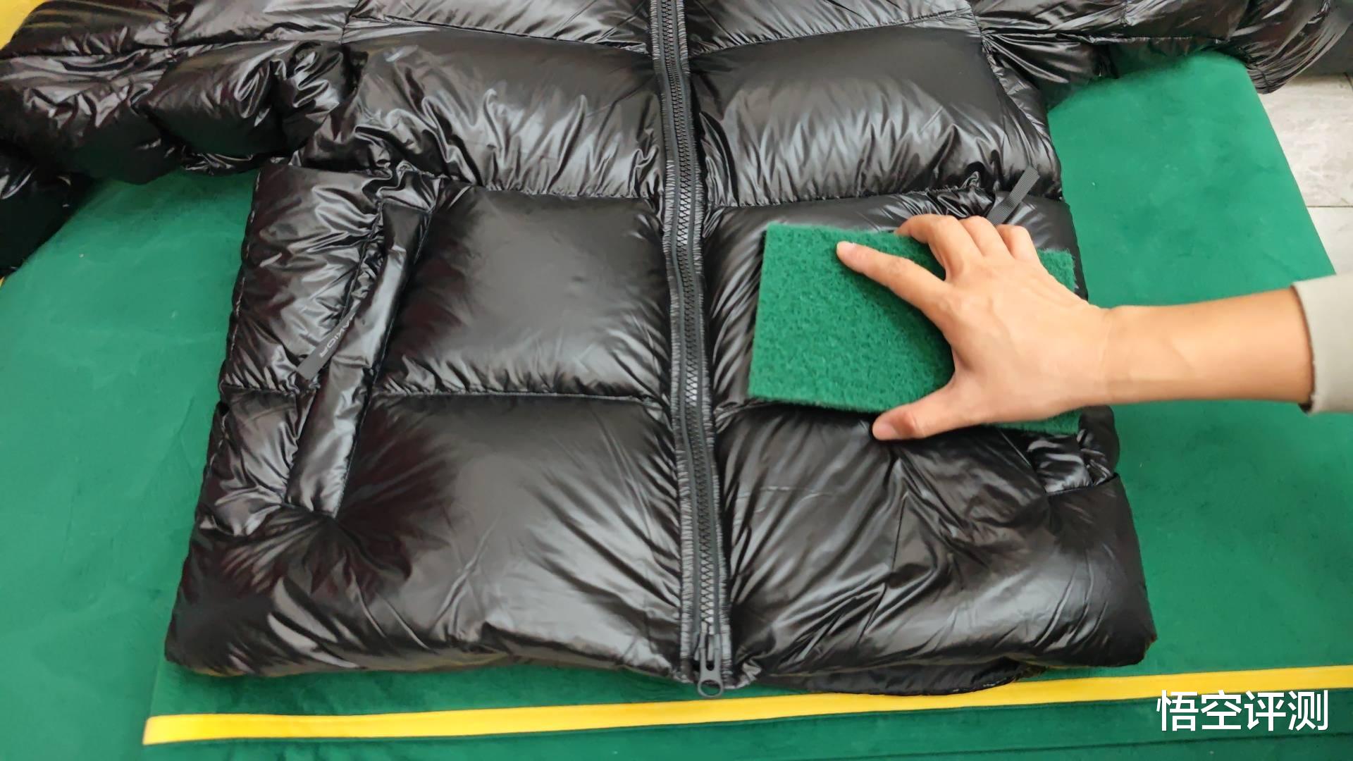 这一项测试更为严格,GK羽绒服经受了绿色海绵擦的反复摩擦,长达10分钟!