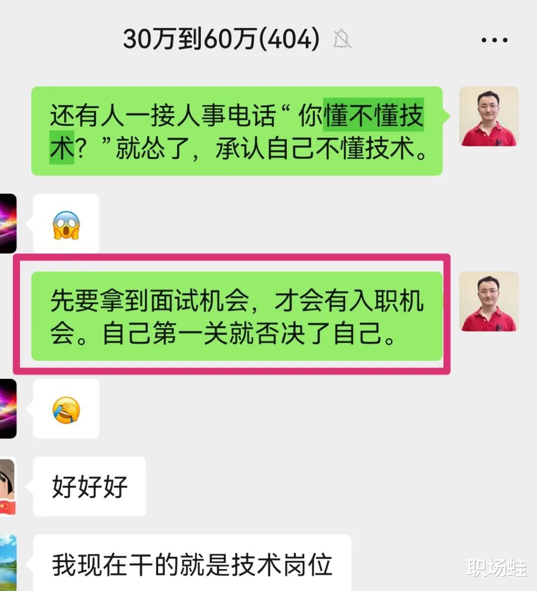 你要知道,跟你联系的这个HR,是个刚毕业1-3年的学妹为主,也可能是刚毕业的学弟,他们目前做着全公司工资最低的部门中最忙的工作,叫招聘专员、招募助理,领着的也是几乎全公司的办公室人员中最低的薪资,不一定赶得上前台和行政助理的工资。他们大致是2000-2005年出生的第一批蛋蛋后,他们哪里知道啥是技术?你说你“不懂技术”,他们当然就给你打个标签“不懂技术”,即淘汰。