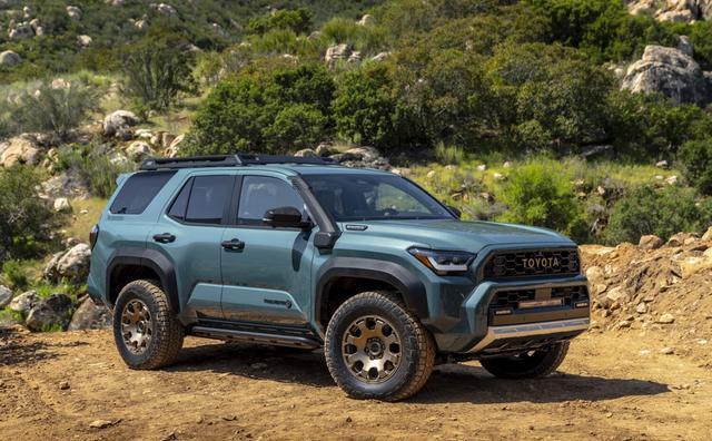 外观方面,全新丰田4Runner采用了与丰田Tacoma皮卡类似的前脸风格,隆起的车身线条也使其具备不同于城市SUV的硬派造型特征。新增的Trailhunter与TRD Pro车型类似,车头处采用的是“TOYOTA”字母车标,其它车型则使用的是丰田品牌LOGO。另外,TRD Sport和TRD Pro车型在发动机盖上还配备有亮黑色通风口。