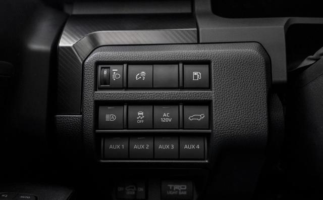 TRD Pro车型更侧重于越野能力,配备TRD调校的FOX QS3阻尼可调减振器,车内可选黑色或红色内饰风格,并带有迷彩图案装饰。此外,该车型配备了SofTex材质电动调节座椅、TRD性能排气尾管、18英寸黑色轮辋等配置。本代车型新增的Trailhunter车型则提供18英寸青铜色轮辋、ARB车顶行李架、高位进气口、OME减振器以及定制车漆等。