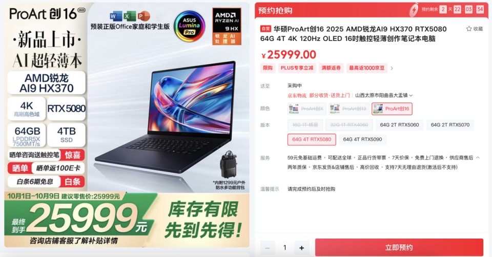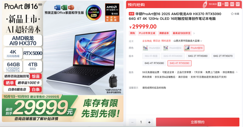 10月1日华硕ProArt 创16 2025将正式开售,可选RTX 5080/5090,首发价25999 元起,感兴趣的创作者们可上京东搜索#华硕ProArt 创16 2025#了解更多产品详情,并进行预约抢先锁定!