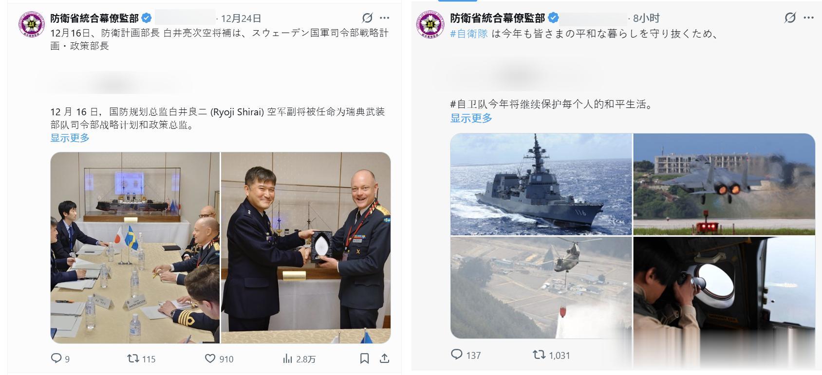 谁也没有想到,自从2025年12月22日开始,日本防卫省的对外宣传窗口——统合幕僚监部就不发任何报告了,在社交媒体上的最后记录时间为2025年12月24日,这是圣诞节放假开始了。