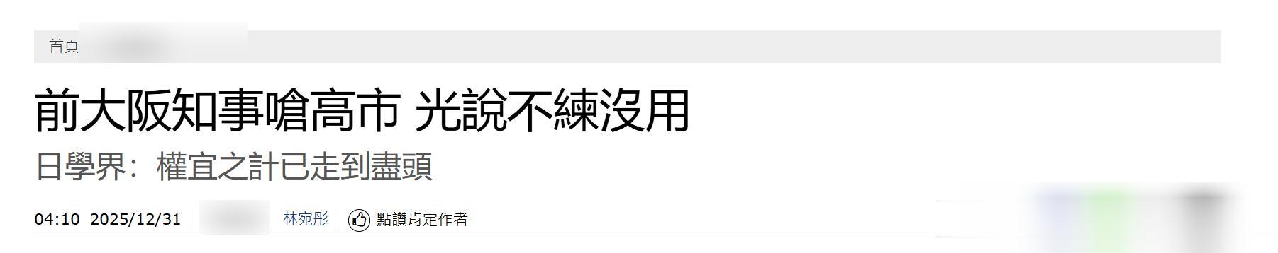 桥下彻公开批评首相高市早苗,原因只是他明确地知道,日本缺乏实际军事与制度准备,再强硬的发言都无法形成有效吓阻,如果与中国开战,后果只有一个:日本在台海完败!他是看到了现在中日再战,没有任何胜利的可能性。