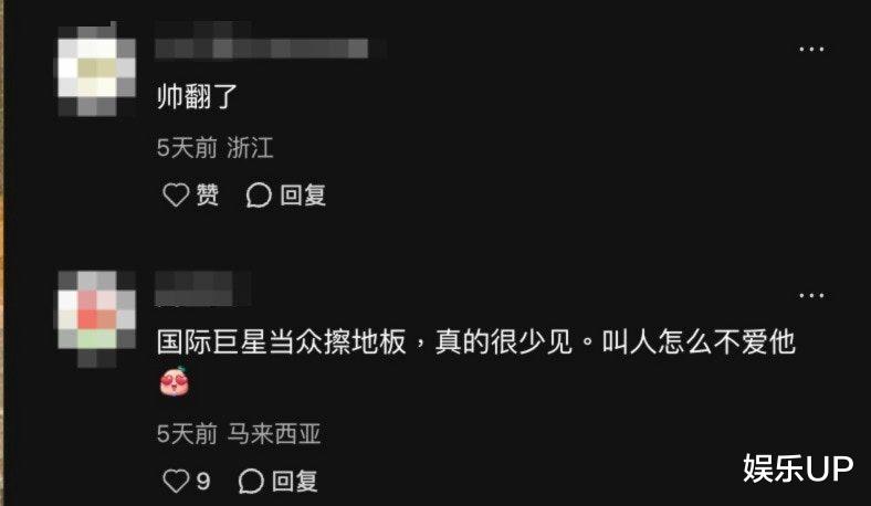 网友们纷纷表示被这个细节打动:“这就是为什么越来越多人喜欢他,实力派还这么谦逊”、“颜值高教养更好,擦地都这么帅气”。其实这已经不是王嘉尔第一次因为贴心举动上热搜,从给工作人员打伞到主动扶起摔倒的粉丝,他一直保持着这种低调温暖的作风。