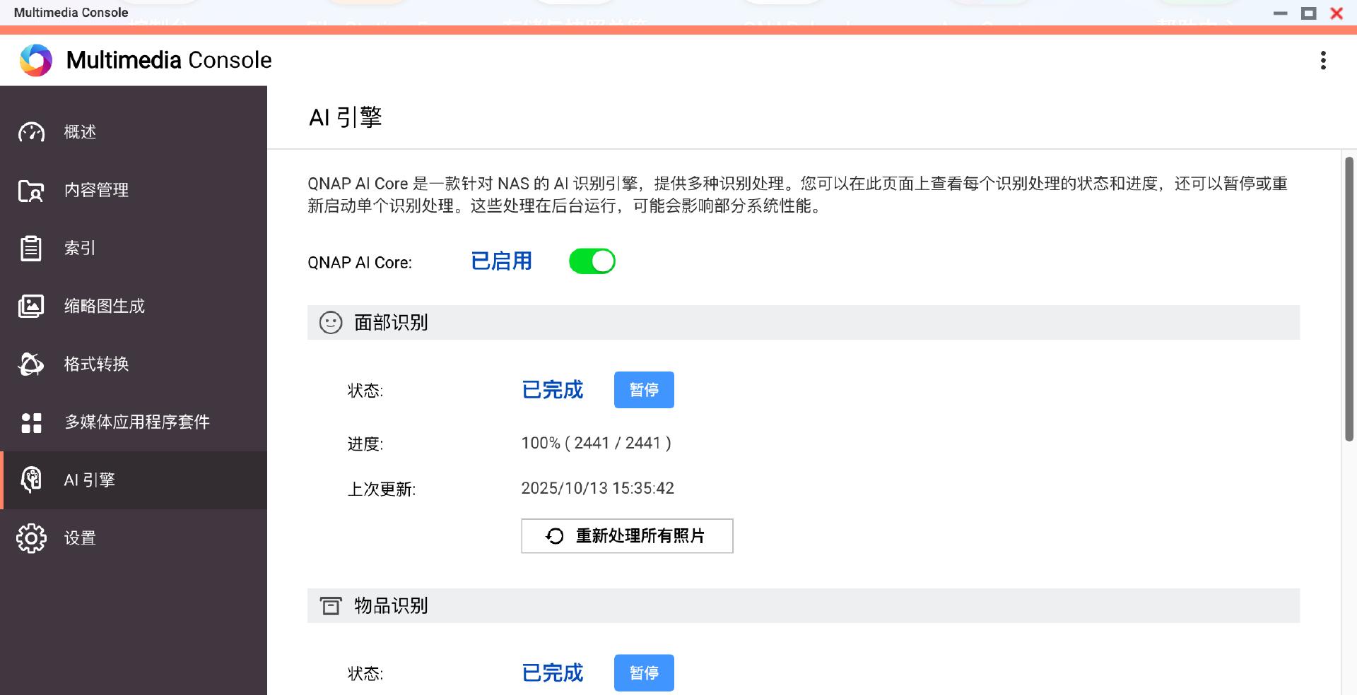 QNAP AI Core影像识别引擎支持GPU、NPU、TPU和 Hailo AI加速模块等四种AI 运算资源,得益于Intel酷睿N355处理器集成GPU Intel Graphics ,威联通Qu405 的AI影像识别速度相比我之前使用的威联通TS-464C2快了一大截,以前,对2000张图片进行分类需要5-10分钟,现在只需要不到1分钟就能搞定。