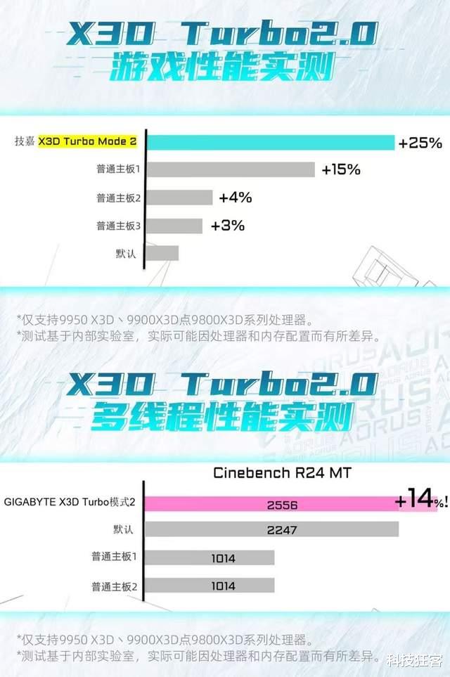 驱动整个硬件体系发挥最大效能的,是技嘉独家研发的“X3D鸡血模式 2.0”智能优化引擎。当系统检测到用户启动游戏时,引擎会自动优化CPU核心调度与缓存访问优先级,将运算资源聚焦于直接影响帧生成的前台游戏线程,有效提升操作的跟手性与帧率稳定性,减少因后台任务干扰导致的帧数波动。而当用户切换到Blender、HandBrake等渲染或编码软件时,系统则会自动切换至全核心负载优化模式,最大化多线程吞吐效率。无论用户是资深超频玩家还是普通爱好者,都能通过这一套安全、自动的调优方案,获得一套为X3D架构深度优化过的系统设置,将处理器的理论性能无缝、稳定地转化为实际应用中的流畅体验。